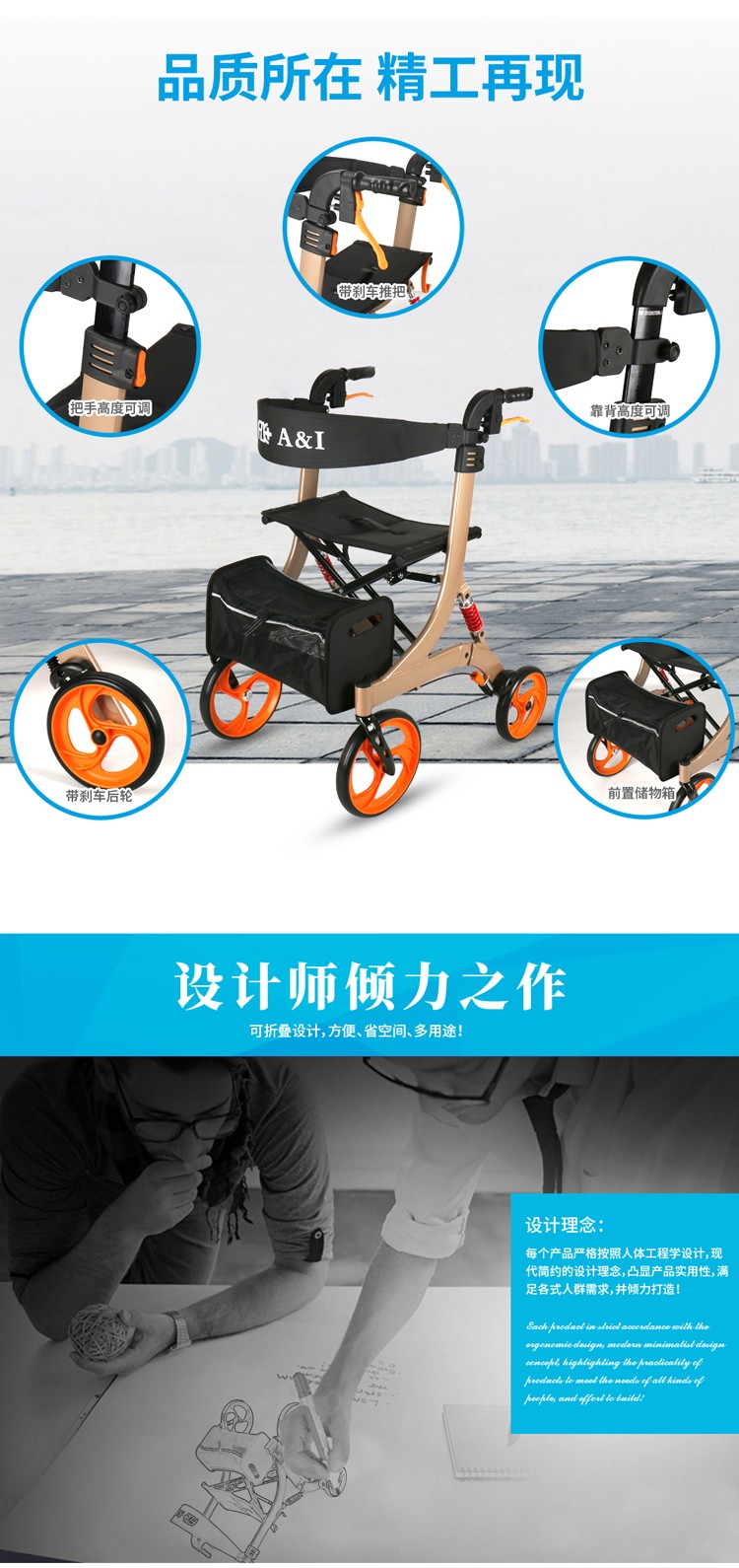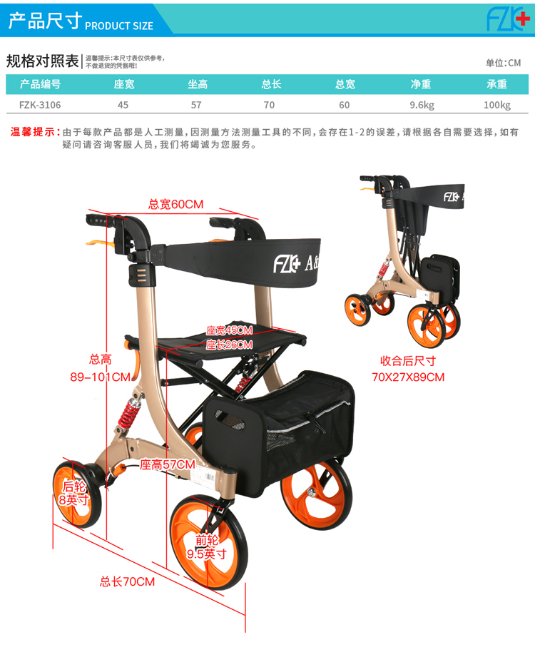 FZK-3106 折疊站立四輪車(減震款)