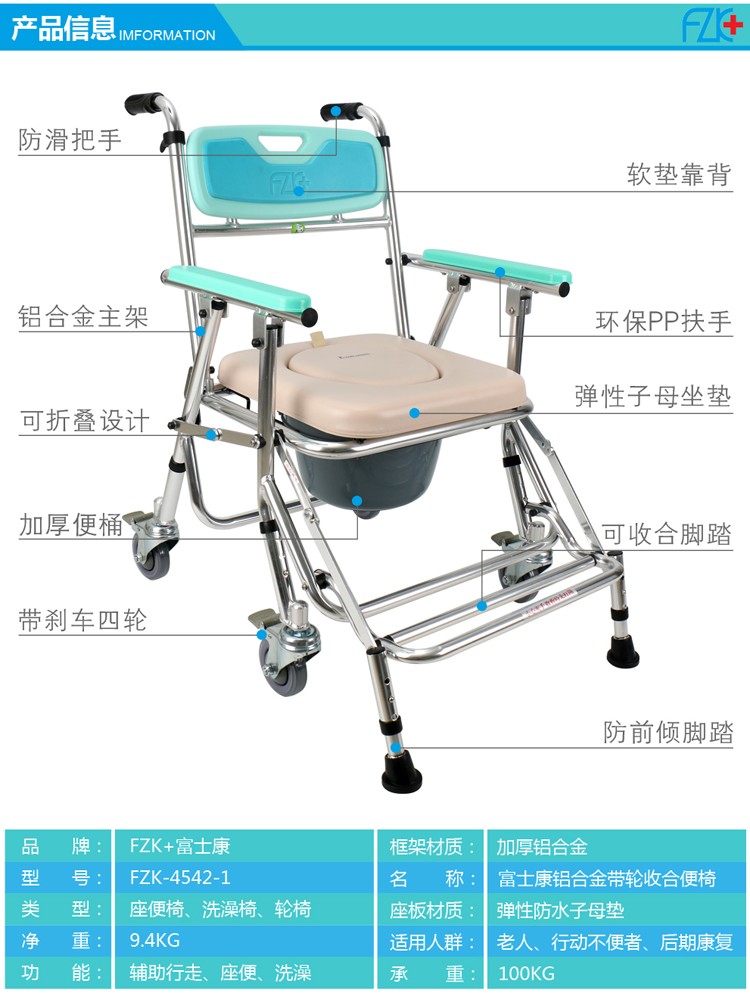 FZK-4542-1 ALUMINUM FOLDING COMMODE CHAIR(WITH ANTI-TIPPER)
