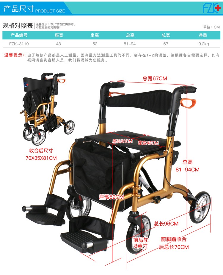 FZK-3110 ALUMINUM MULTIFUNCTION ROLLATOR